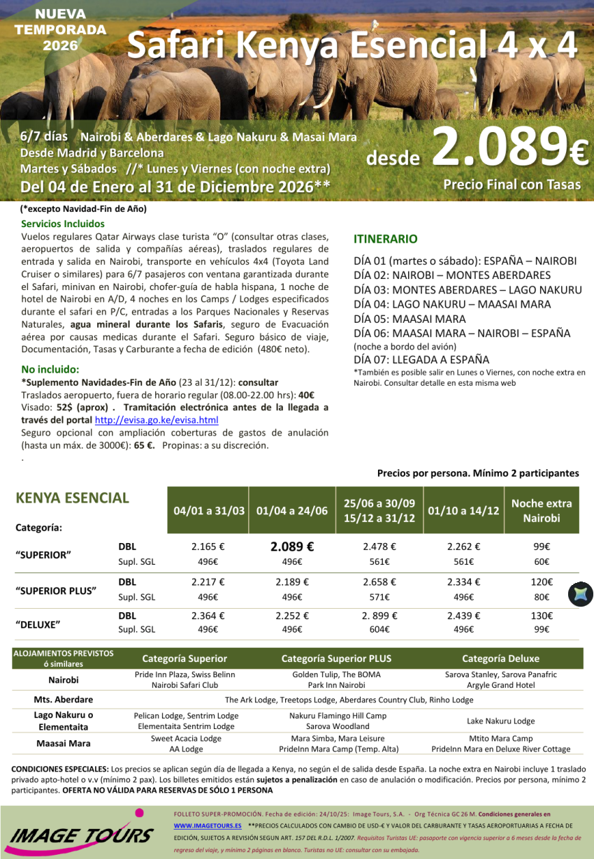 KENYA Esencial 2026: Nairobi & Aberdares & Lago Nakuru & Masai Mara, desde 2.089€ tasas incluidas